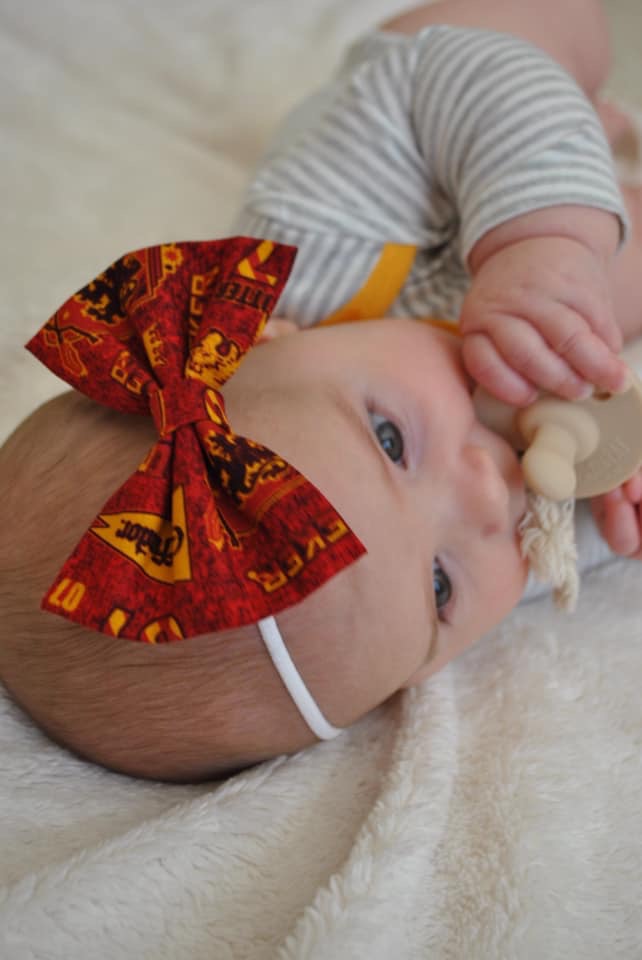 In the way of bows on nylon for pre-head-of-hair (younger,) babies… I have learned that not all nylon is made equal. Some can be harder and not so forgiving on soft little baby heads and will leave harsh red marks where they were placed. You want to find the shops who’s nylon is stretchy and soft on the babe’s head and can be worn a long while without hurting them.